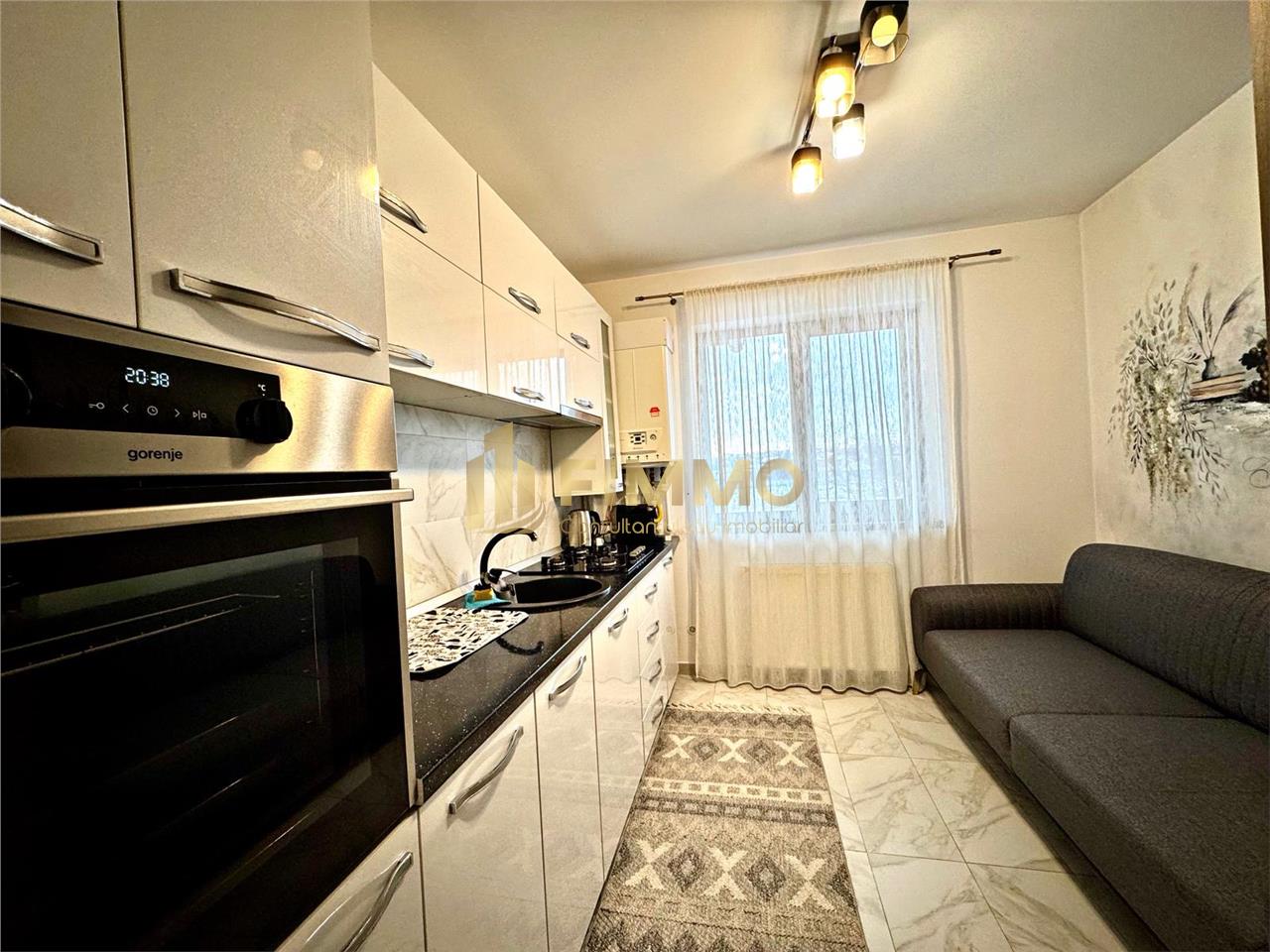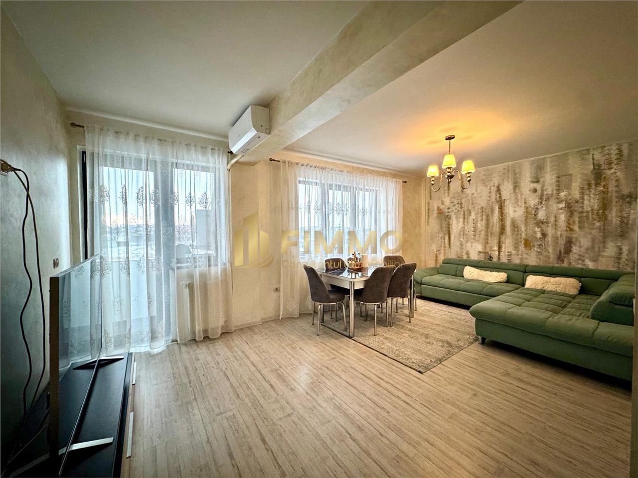 Apartamentul se predă complet mobilat și utilat, dotat cu centrală termică pe gaz, aer conditionat, mașină de spălat rufe, frigider, aragaz, hotă, etc..