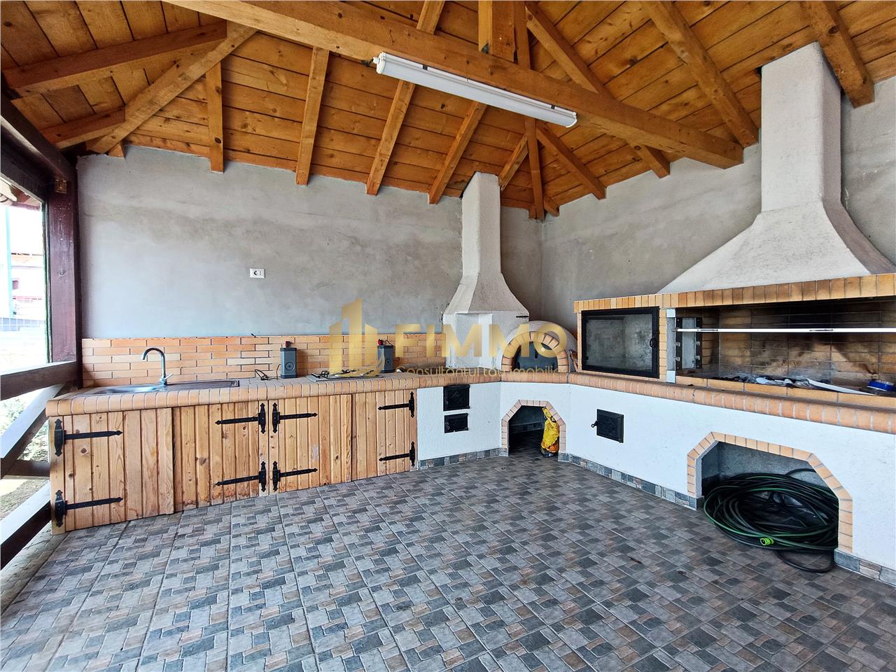 Curtea este complet amenajata si reflecta grija pentru detalii si functionalitate. In zona de relaxare, foisorul este de vis – dotat cu gratar si cuptor pentru pizza, ofera cadrul perfect pentru mese in familie sau evenimente cu prietenii.
