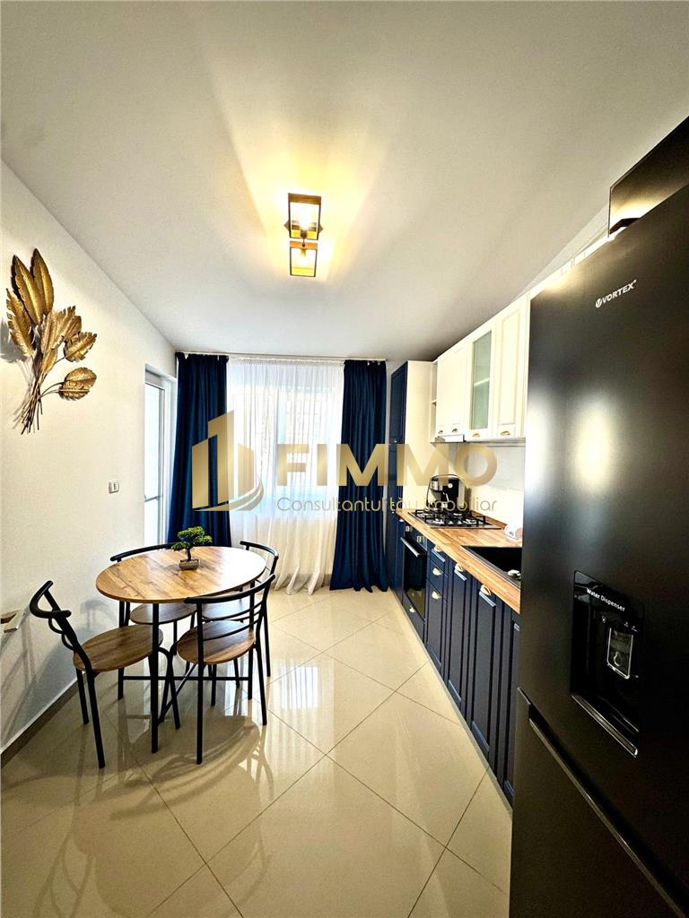 Apartamentul se predă complet mobilat și utilat, dotat cu centrală termică pe gaz, mașină de spălat rufe, frigider, aragaz, hotă, etc..